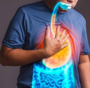 Acidity or acid reflux is a very common condition and is characterized by burning sensation felt around mid chest area, which is caused by the stomach acid flowing back up into the food pipe. The food we eat passes down the oesophagus into the stomach. The gastric glands in the stomach create acid which is necessary to digest the food and to kill any germs. When this acid reflux occurs back into the food pipe it can potentially irritate/damage the lining of our food pipe and cause burning sensation in mid chest.